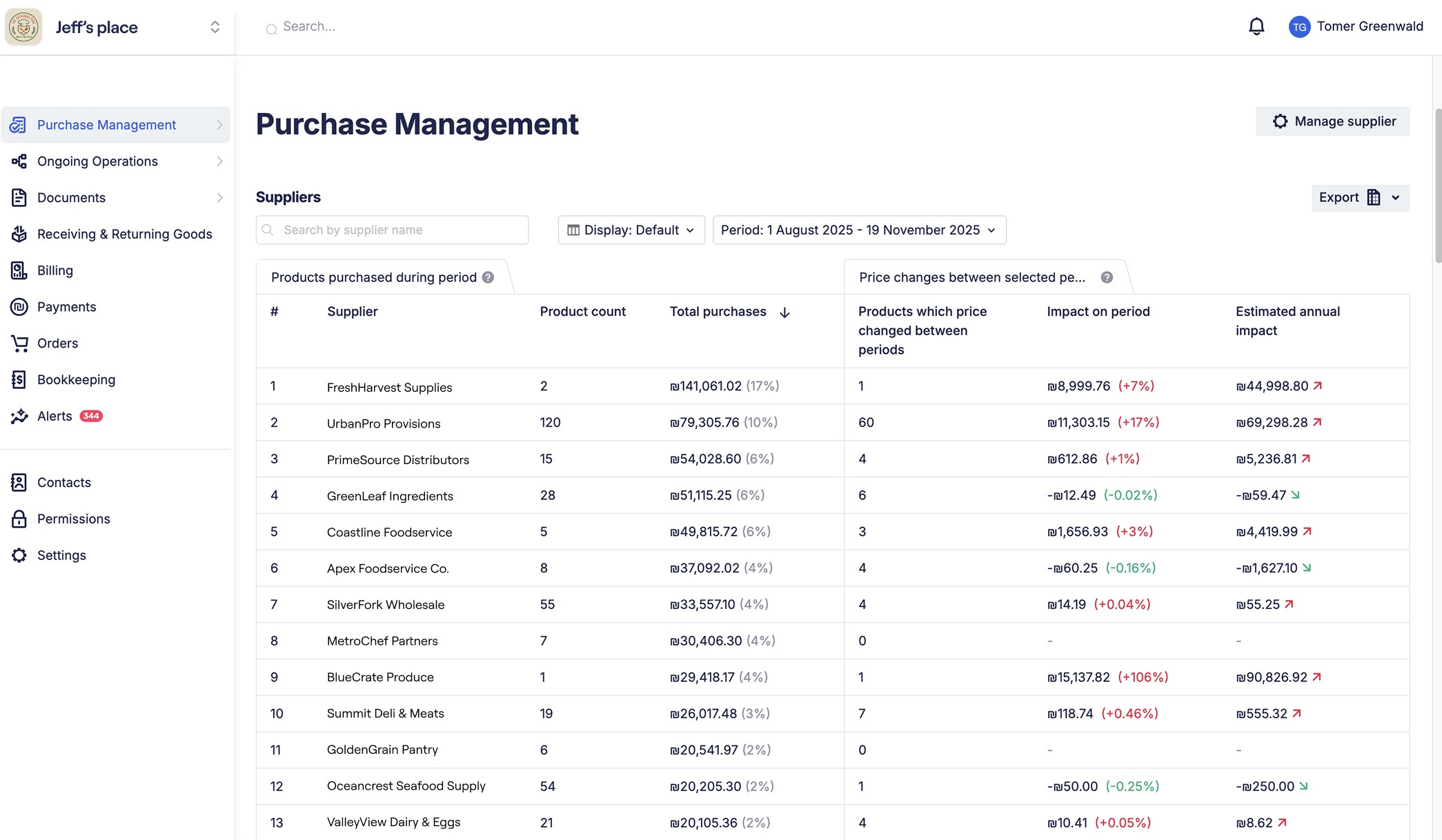 Focus negotiation on top suppliers/products when costs change.