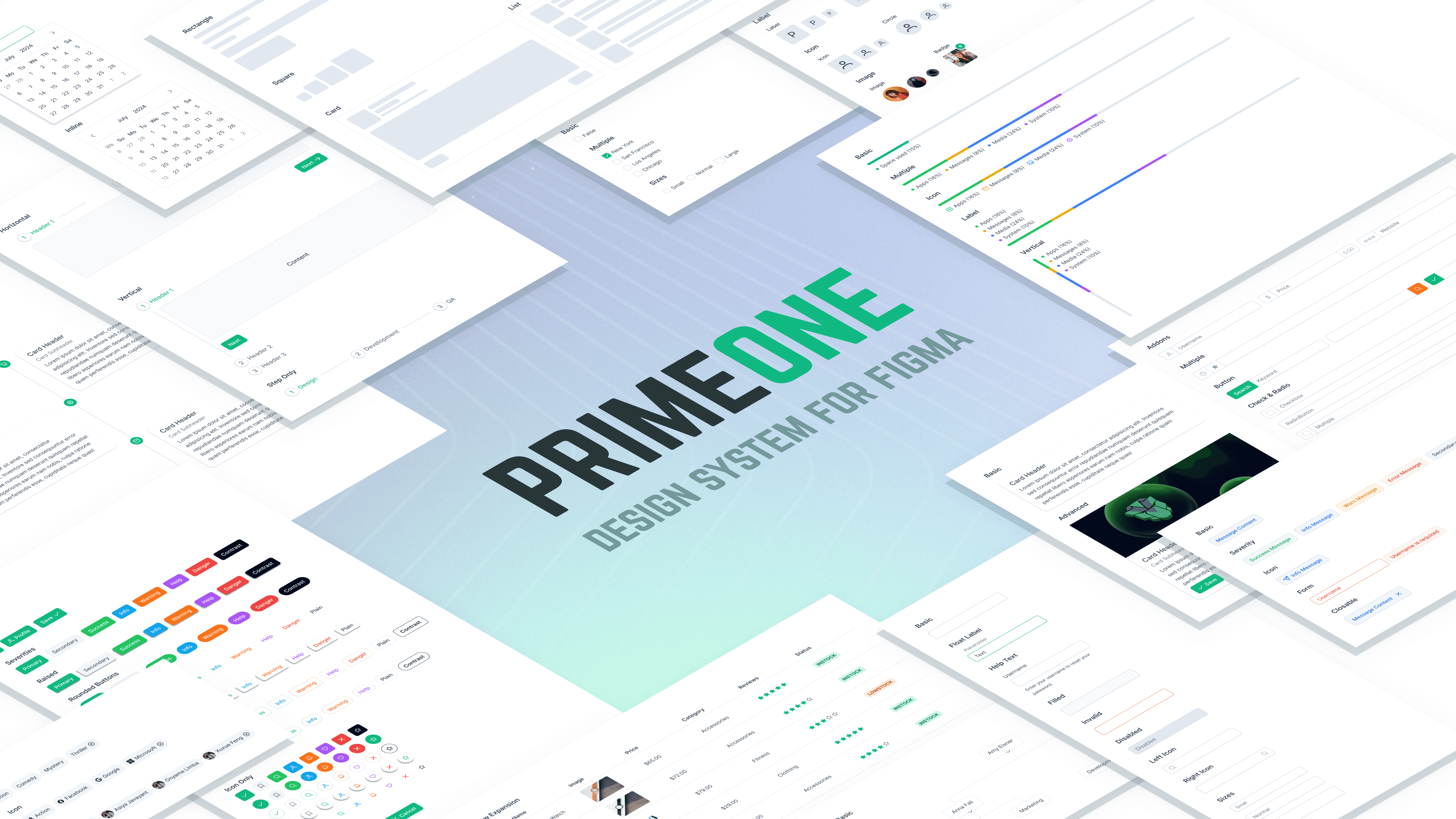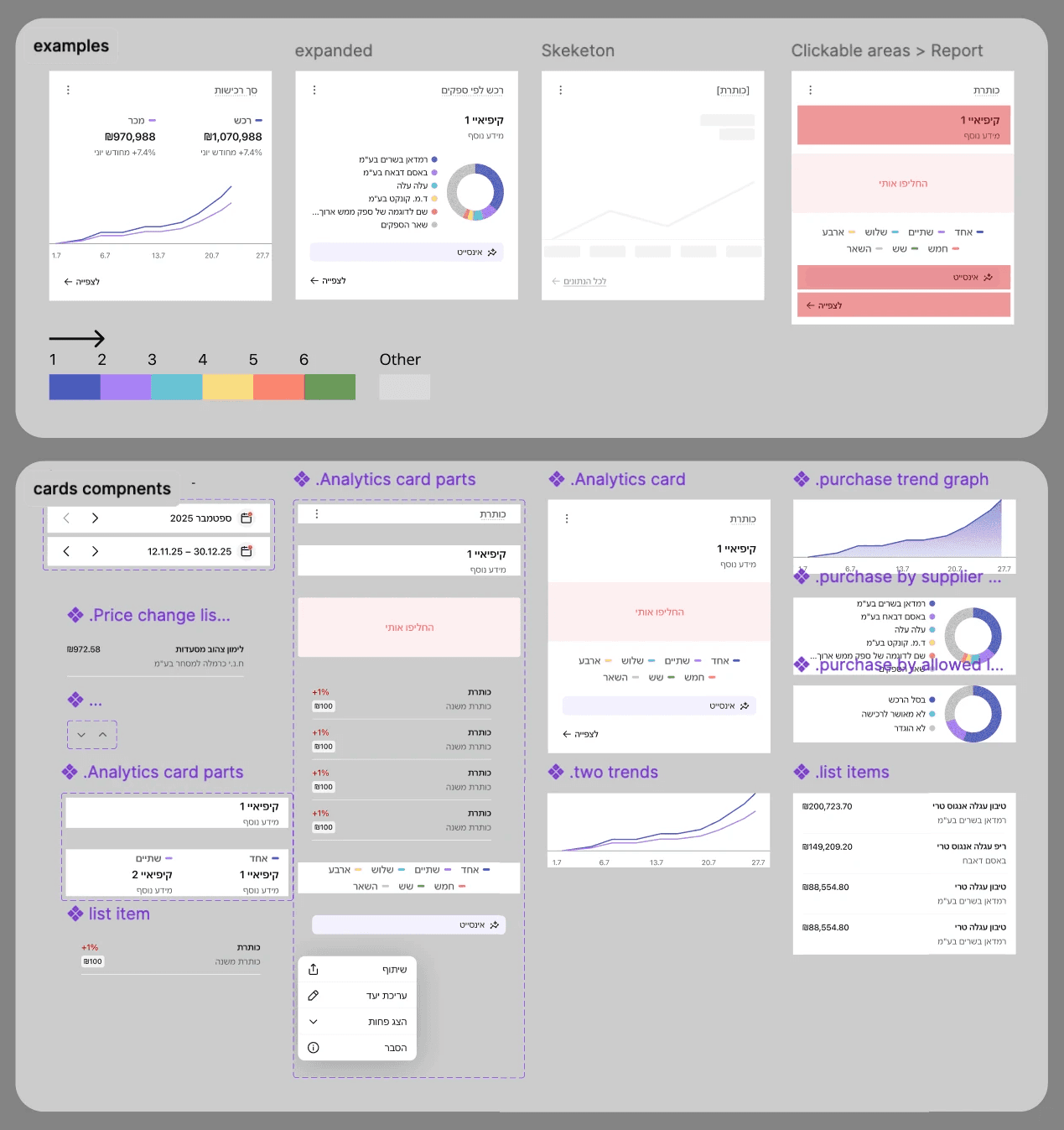 The widgets are built from a shared set of simple building blocks, so new cards can be created by reusing the same layouts, charts, and lists instead of designing each one again.